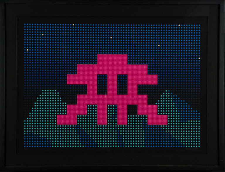 Der 1969 geborene französische Künstler Invader, auch bekannt unter dem Pseudonym „Unidentified Free Artist“, hat die Street Art durch seine unverwechselbaren Mosaikarbeiten revolutioniert. Inspiriert von der 8-Bit-Ästhetik der Videospiele der 1970er und 80er Jahre, begann er Ende der 1990er Jahre, Städte weltweit mit seinen pixelartigen Wandbildern zu „erobern“. Seine Werke bestehen aus wetterfesten Keramikfliesen, die er in akribischer Arbeit an Mauern, Brücken und kulturell bedeutsamen Orten wie dem Hollywood-Sign in Los Angeles installiert.