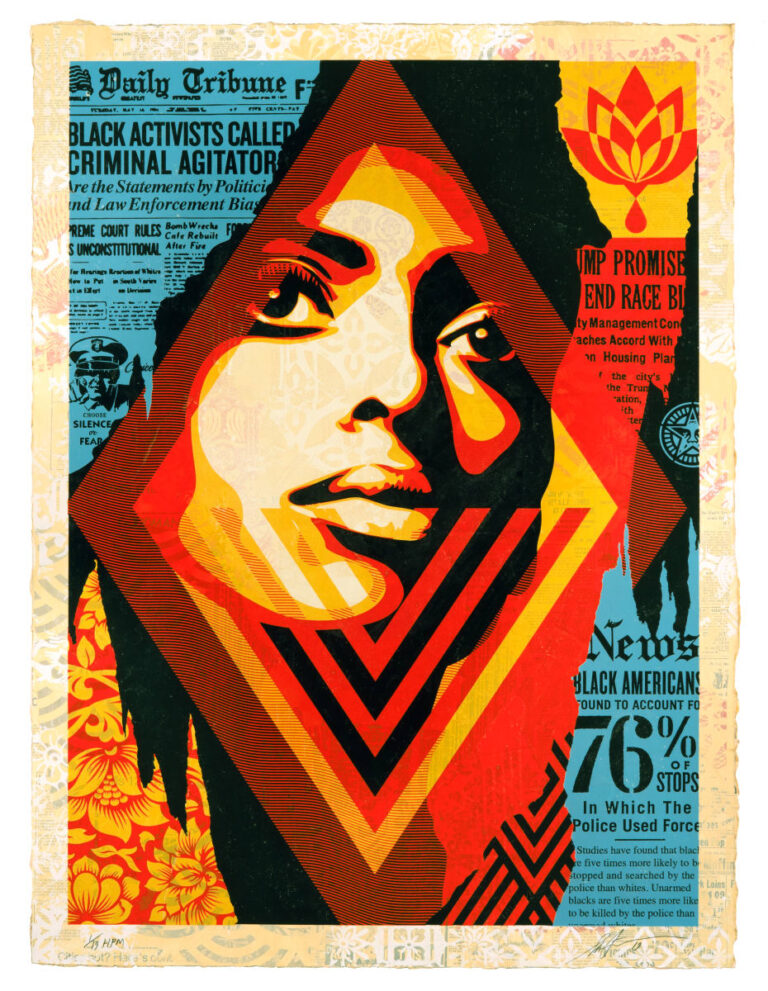 Frank Shepard Fairey, geboren 1970 in South Carolina, ist einer der einflussreichsten zeitgenössischen Künstler und Grafikdesigner seiner Generation. Seine frühen Leidenschaften für Skateboarding und Punkmusik sowie eine einschneidende Diabetes-Diagnose im Alter von 15 Jahren trieben ihn dazu an, seine künstlerischen Visionen mit hoher Produktivität in die Tat umzusetzen. Fairey ist bekannt dafür, die Grenzen zwischen Kunst, Aktivismus und kommerziellem Design zu verwischen, um soziale und politische Ideologien kritisch zu hinterfragen.